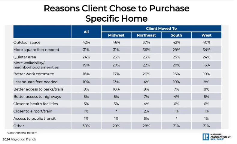 “Being closer to family and friends has been growing in importance among home buyers since the onset of the pandemic,” says Matt Christopherson, the lead author of the report and NAR’s director of business and consumer research. “Perhaps the pandemic put things into perspective and buyers are prioritizing family more, but added mobility from remote work also allows this to occur.”