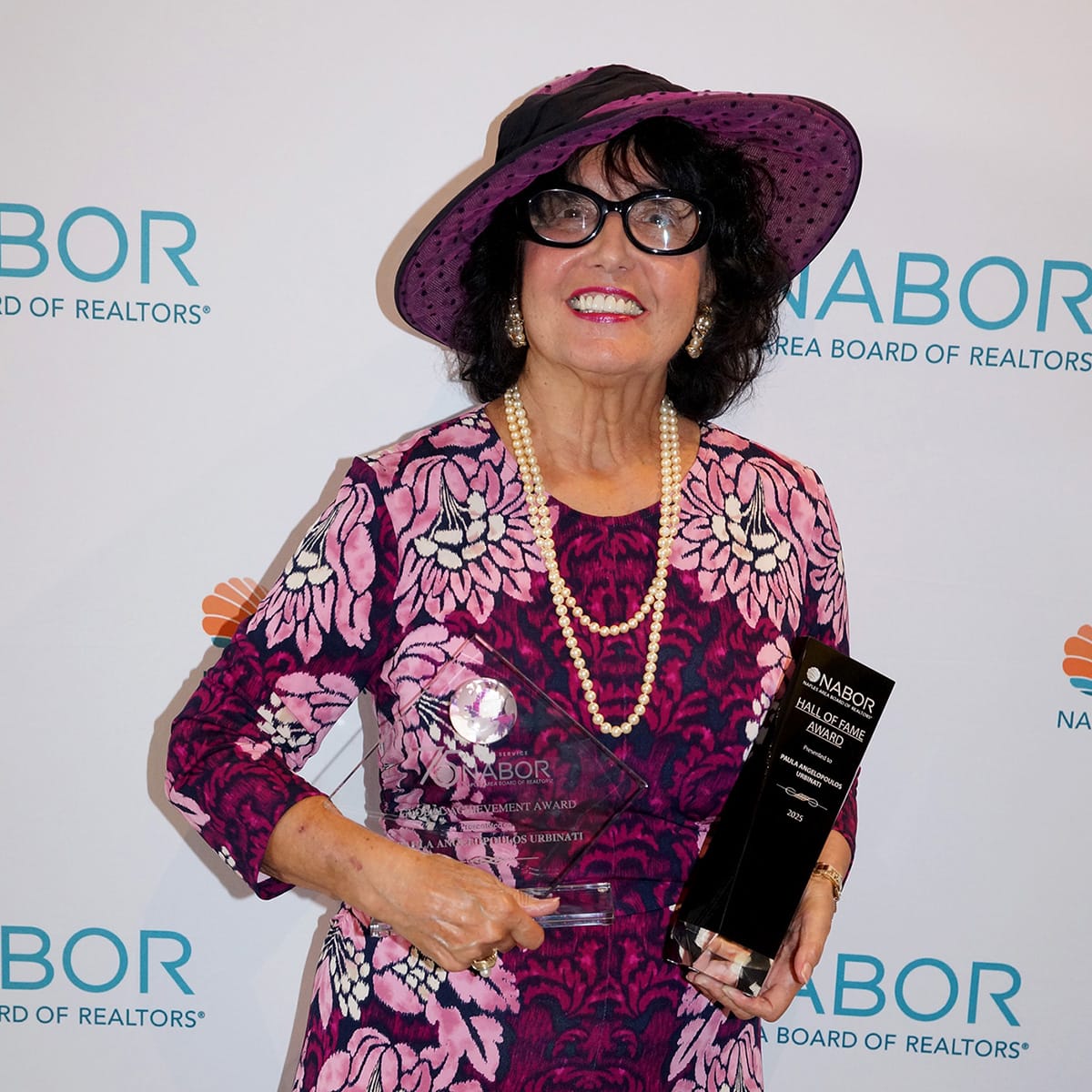 NABOR® President Terrilyn VanGorder presented two Hall of Fame awards. The first was presented to a 34-year veteran REALTOR®, Paula Angelopoulos Urbinati. She is a past NABOR® Hall of Fame RPAC award recipient, has served on NABOR®’s board of directors, is a past REALTOR® of the Year award recipient, and has been a member of both NABOR® and Florida Realtors® Honor Societies for over 20 years. This distinguished award honors a member who has given at least 20 years of extraordinary dedication and service to the profession.