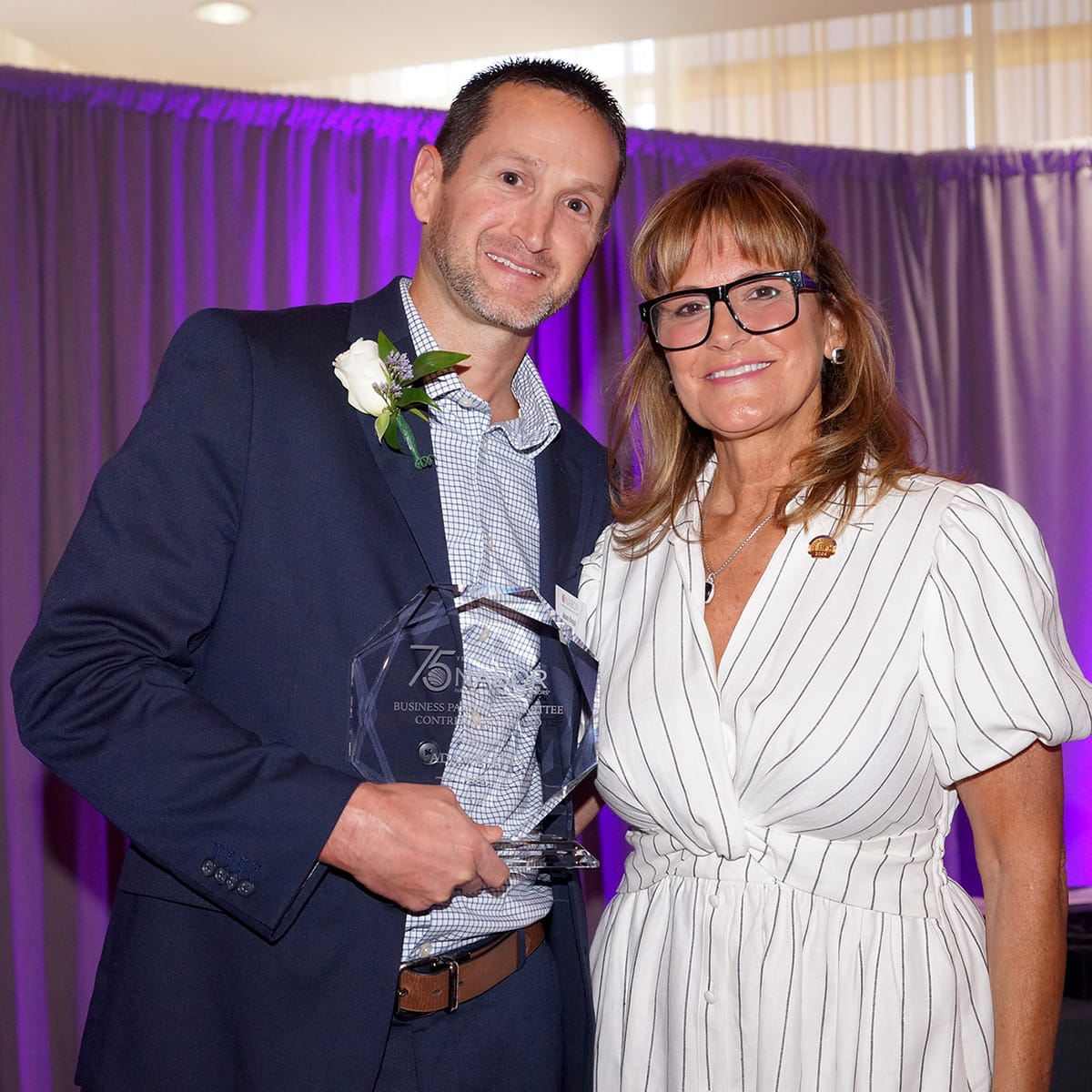 The 2023 Ad Miller Award recipient Danielle Hudson presented the 2024 Ad Miller Award to former Florida Housing Finance Corporation Chairman Ryan Benson. This NABOR® award recognizes an individual who works to enhance and/or preserve private property rights, ownership and transferability, and the preservation of the free enterprise system. Benson is also involved in leadership at Collier Building Industry Association and the Housing Alliance, a new non-profit that provides information, education and advocacy for accessing and developing attainable housing solutions in Collier County.